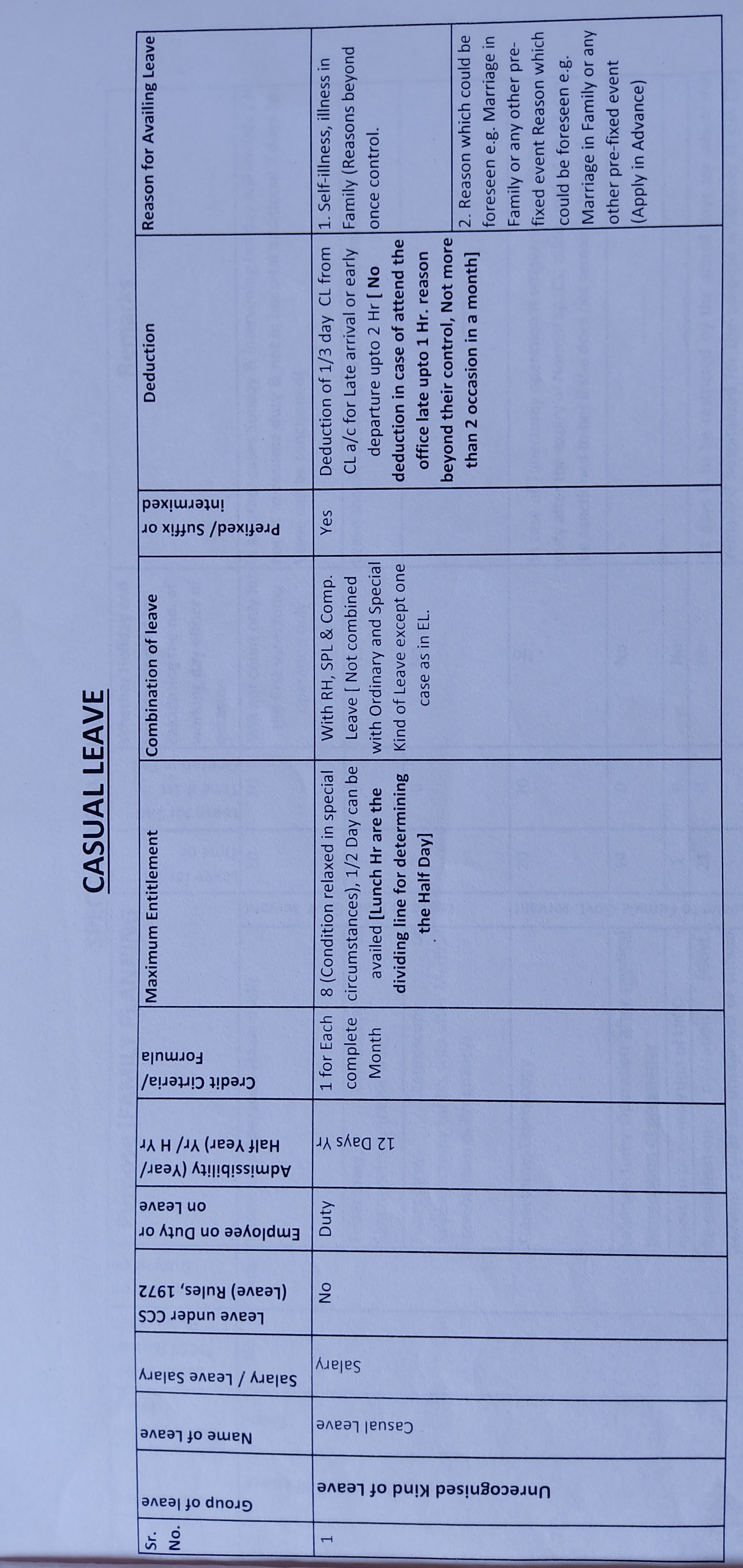 1. UNRECOGNIZED KIND OF LEAVE [CCS (LEAVE) Rule, 1972 Not apply]